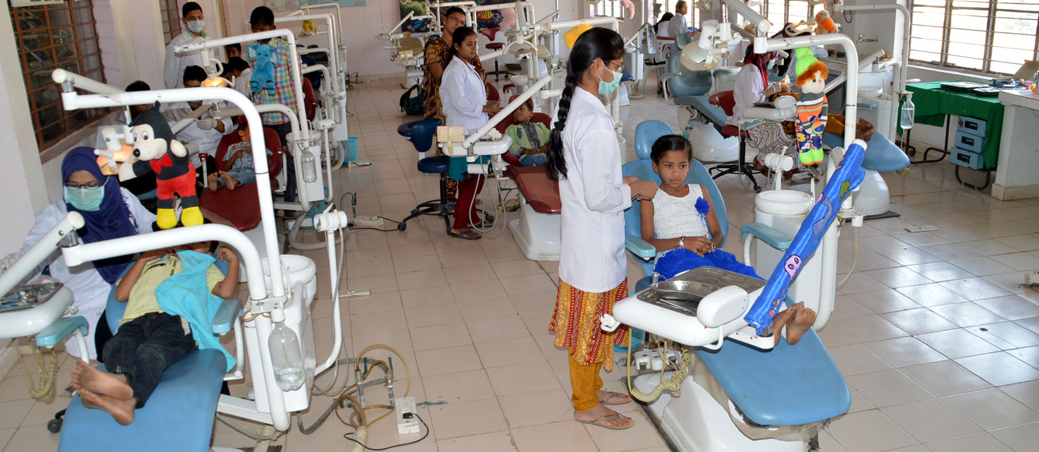 The clinic includes 20 dental chairs with and is well equipped with sophisticated instruments which includes Endomoter, apex locator, Light emitting diode curing unit, intra oral camera, Pulp testers, Amalgamator, Primary and permanent stainless steel crown kits, Easyvac moulding machine, soldering and welding units, Rubberdam kits for isolation and also includes a state of art sterilization section to provide efficient treatment for our child patients.